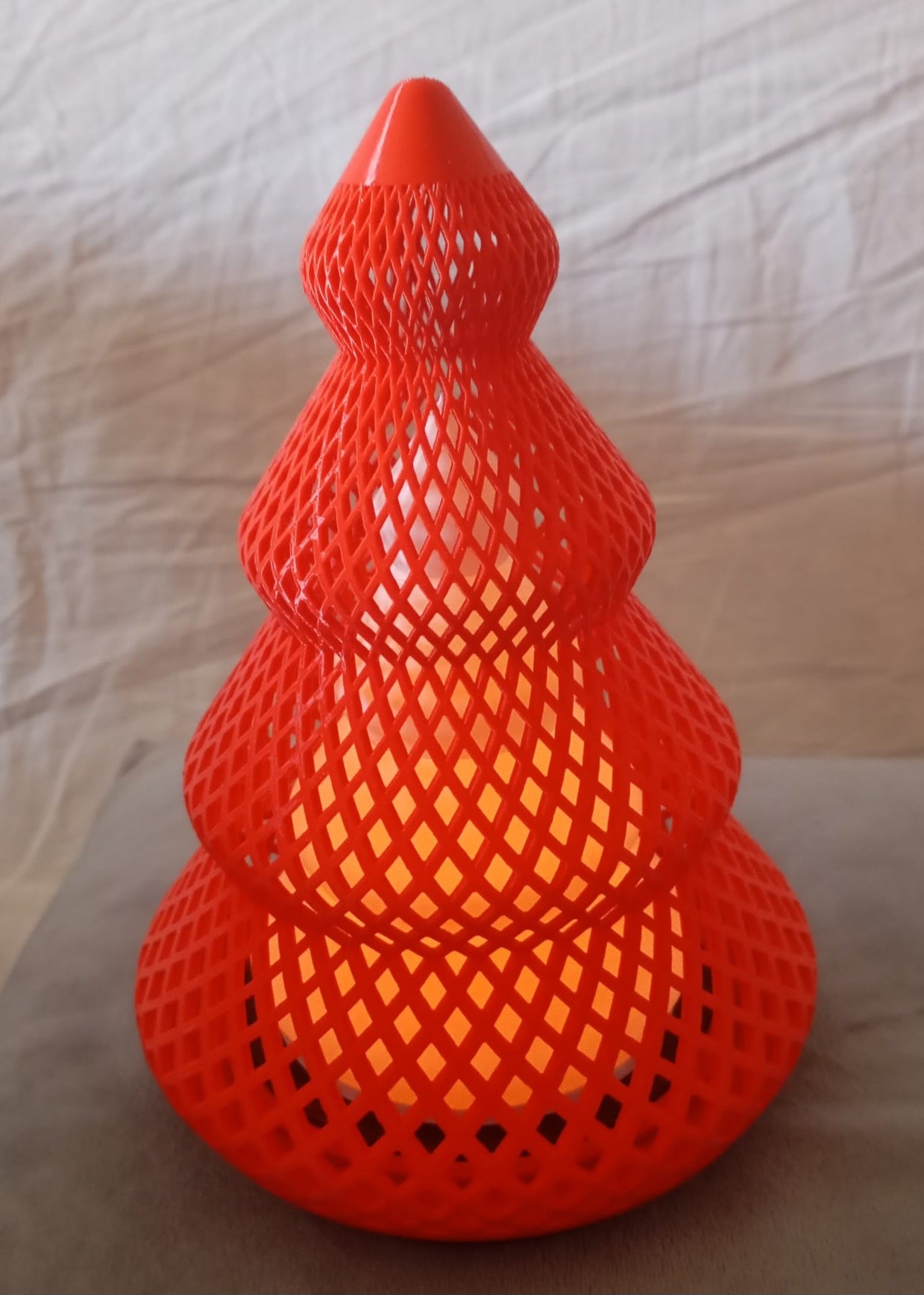 Un albero che non perde foglie, ma diffonde luce. Questo albero luminoso stampato in 3D in PLA unisce design moderno e atmosfera calda, grazie alla sua struttura traforata che lascia filtrare una luce soffusa e piacevole. La trama geometrica crea un elegante gioco di ombre, trasformando qualsiasi stanza in un angolo accogliente e suggestivo.